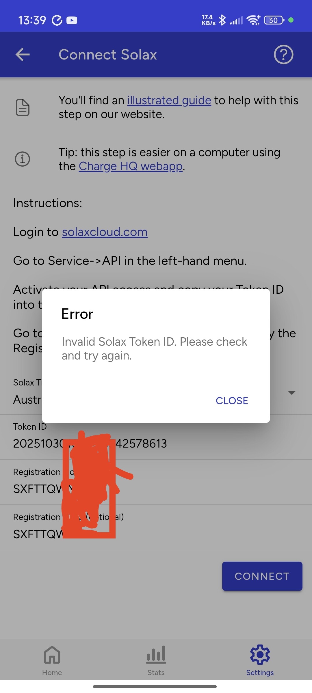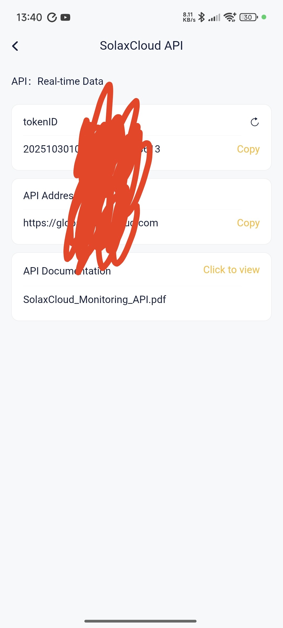 I have even attempted to refresh the token id in solax and this has not been of assistance.