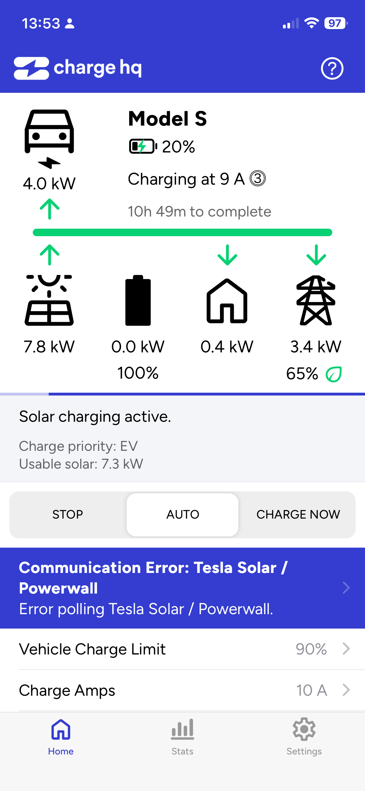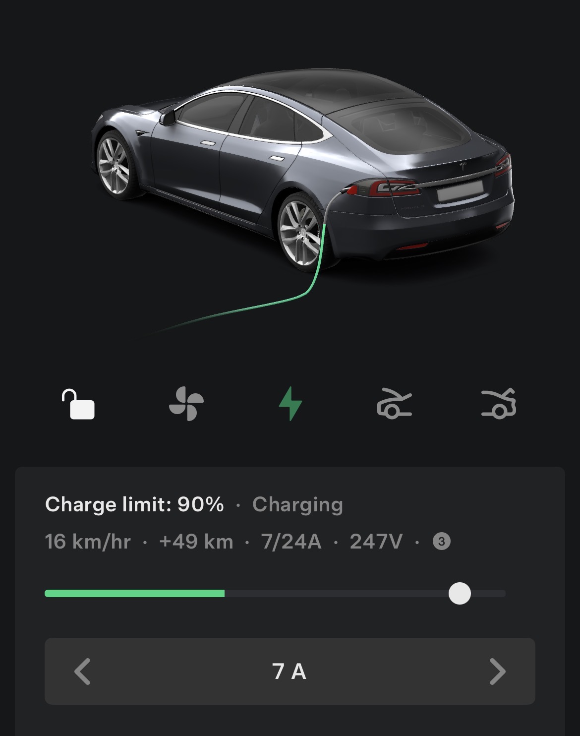 @alphaa to diagnose your issue further, I need a single screenshot from your Tesla app on the EV screen that shows the current charging power (in kW) and the amps, while the vehicle is charging, like this: